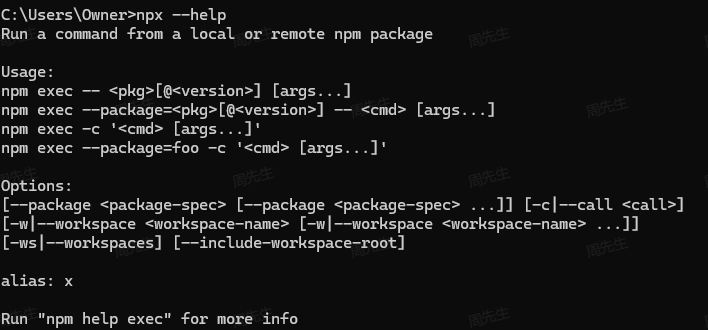 接着我们测试 npx --help