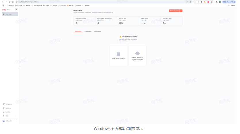 这种方式,中间运行的数据是临时存储在C盘,能快速体验n8n的完整功能,如果是需要数据持久化,推荐使用方法二,Docker方式部署。