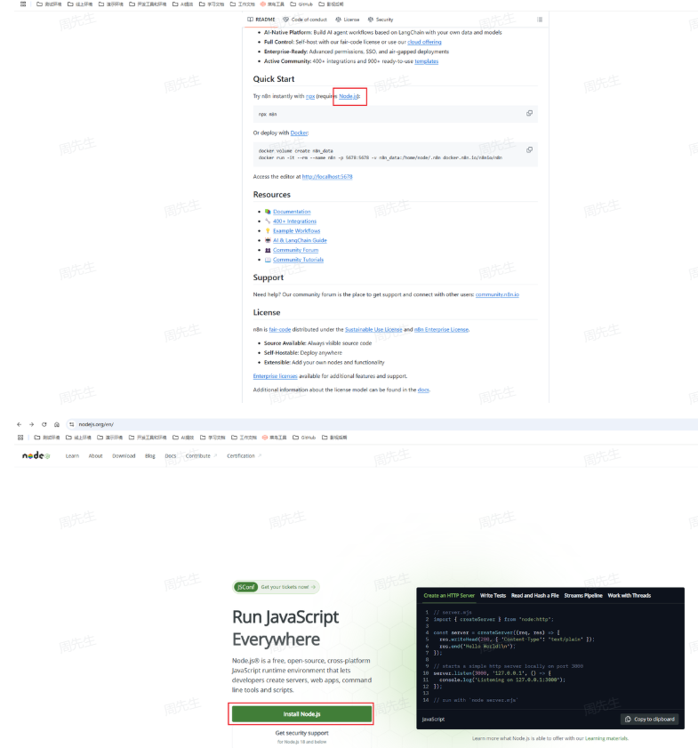 在我们详细了解n8n之前,建议大家先按照下面的文档,安装部署n8n(优先本地部署)