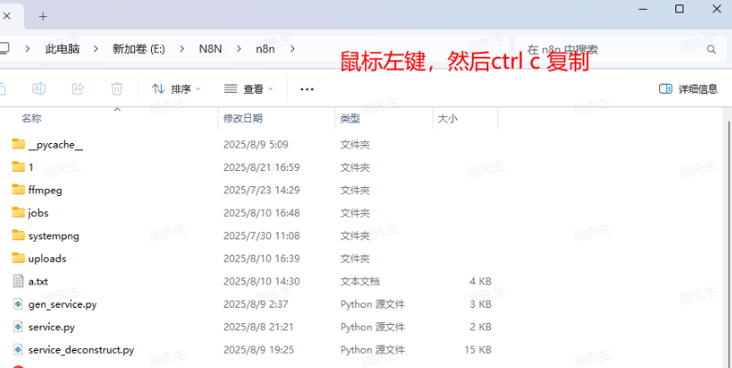 我下面的目录就是在我本地下载目录下新建了 docker,docker 文件夹目录下面新建 n8n文件夹