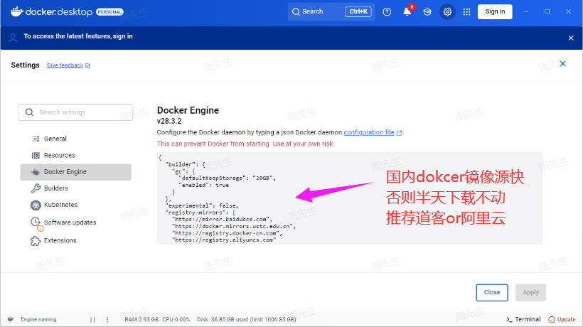Docker Engine 配置,这些镜像代理,方便我们在没有梯子的时候也能下载相关的依赖。