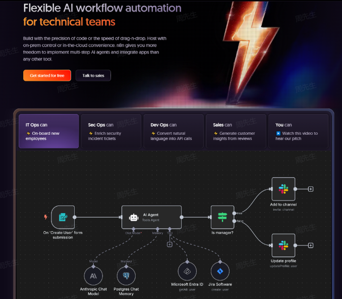 官方地址:AI Workflow Automation Platform & Tools - n8n https://n8n.io/