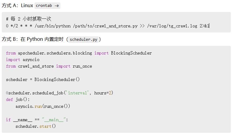 7) 定时任务:apscheduler/cron 扫描关键词清单