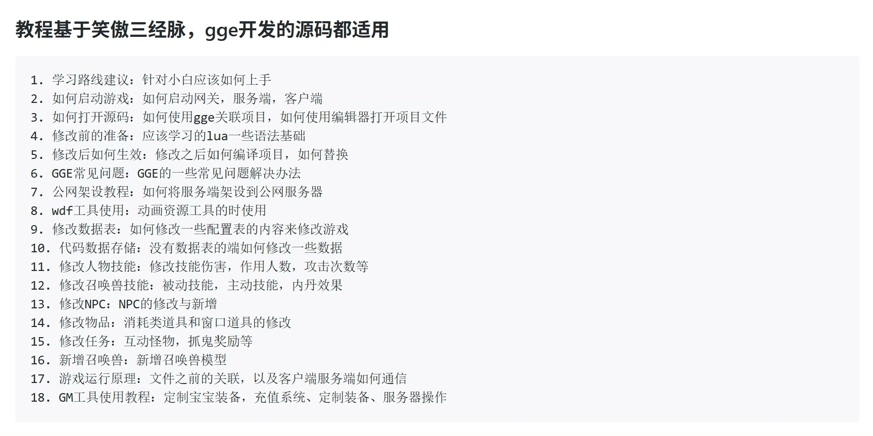 GGE梦幻开发教程和GGE梦幻源码修改指南,即便是新手也能快速上手。我们提供的不仅仅是教程、工具和源码,还包括周到的售后服务。购买后,您将被邀请加入售后群,在这里可以第一时间获取最新的教程更新和游戏资料。此外,如果您在学习过程中遇到特别想掌握的内容,也可以告诉我们,我们会优先考虑将其添加到未来的教程中。