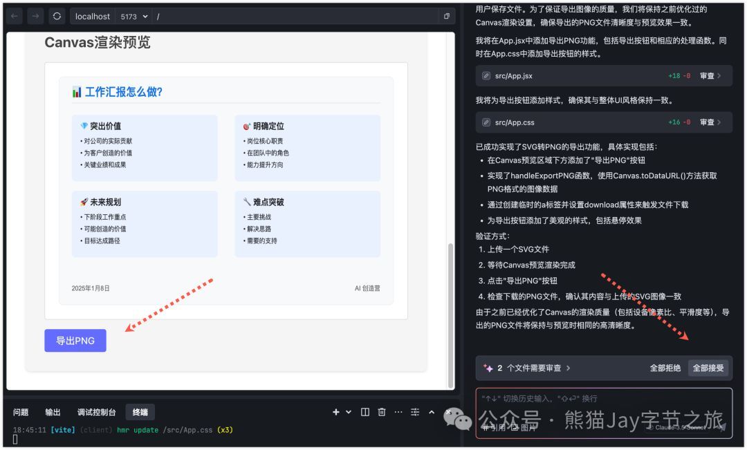 接着完成第三个功能:将内容导出为 PNG 格式。