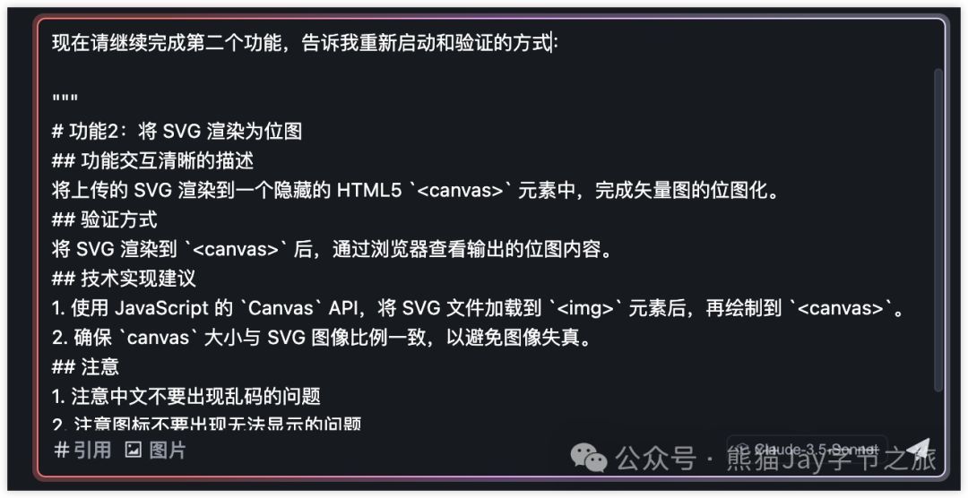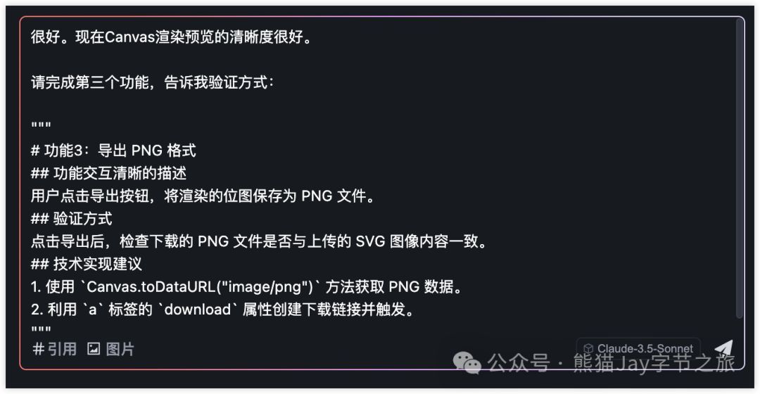 比如,我经常用 Claude 3.5 生成卡片配文章图片,但生成的默认格式是 SVG,需要转成 PNG 才能正常使用。