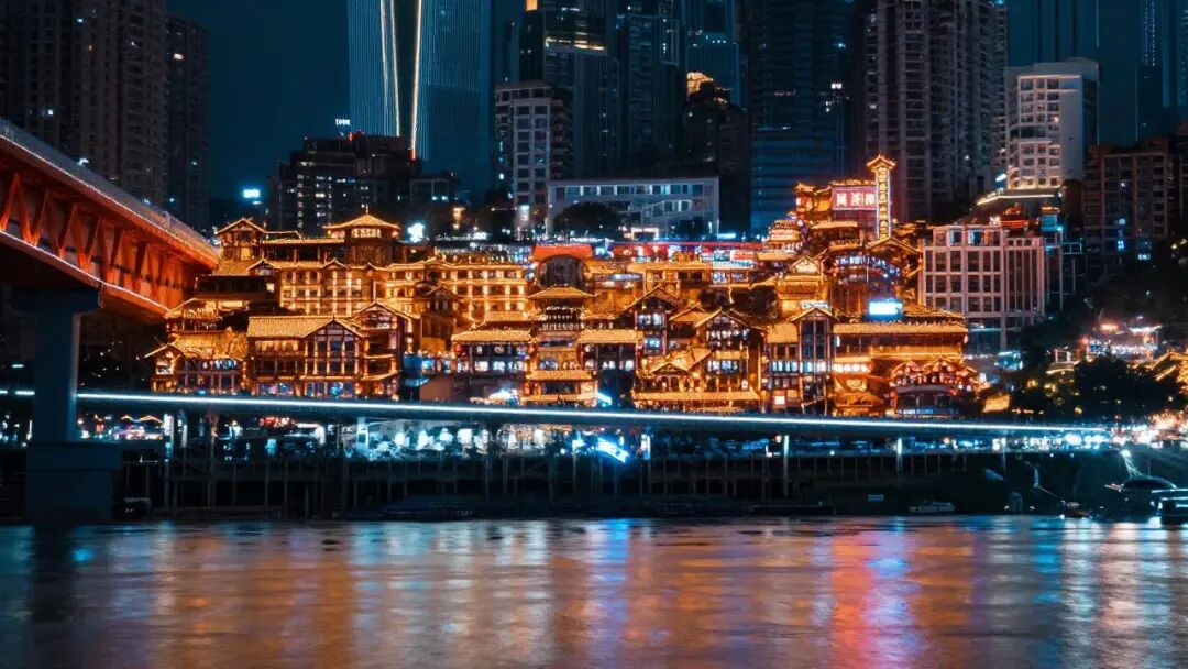 提示词:重庆洪崖洞夜景,赛博朋克风格,霓虹灯光,雨夜反光地面