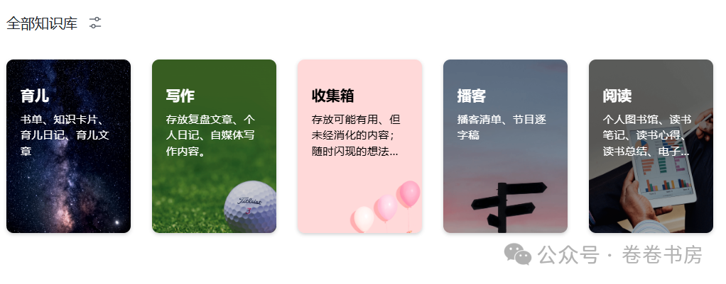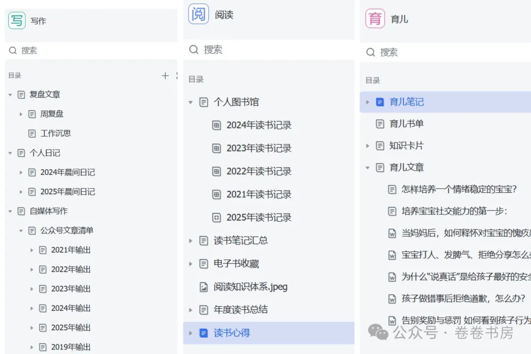 其中,阅读、写作、播客、育儿,是我长期关注的4个“领域”,存放内容包括读书笔记、个人思考、输出文章等。