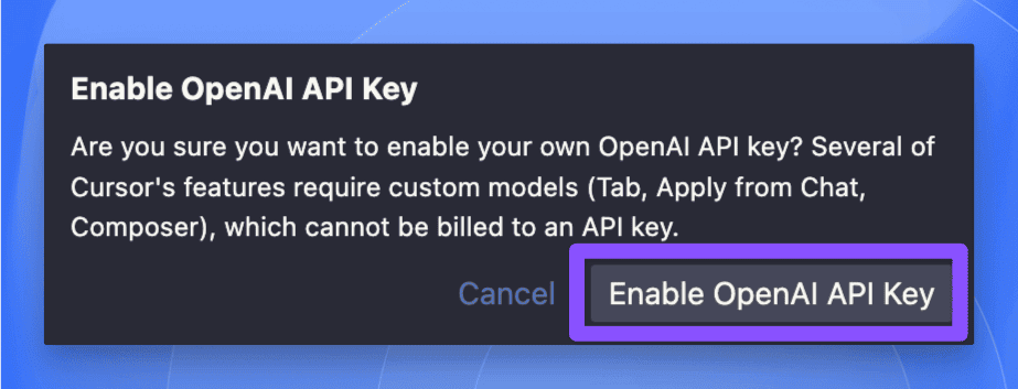 在弹出来的对话框中点击 “Enable OpenAI API Key” 按钮。