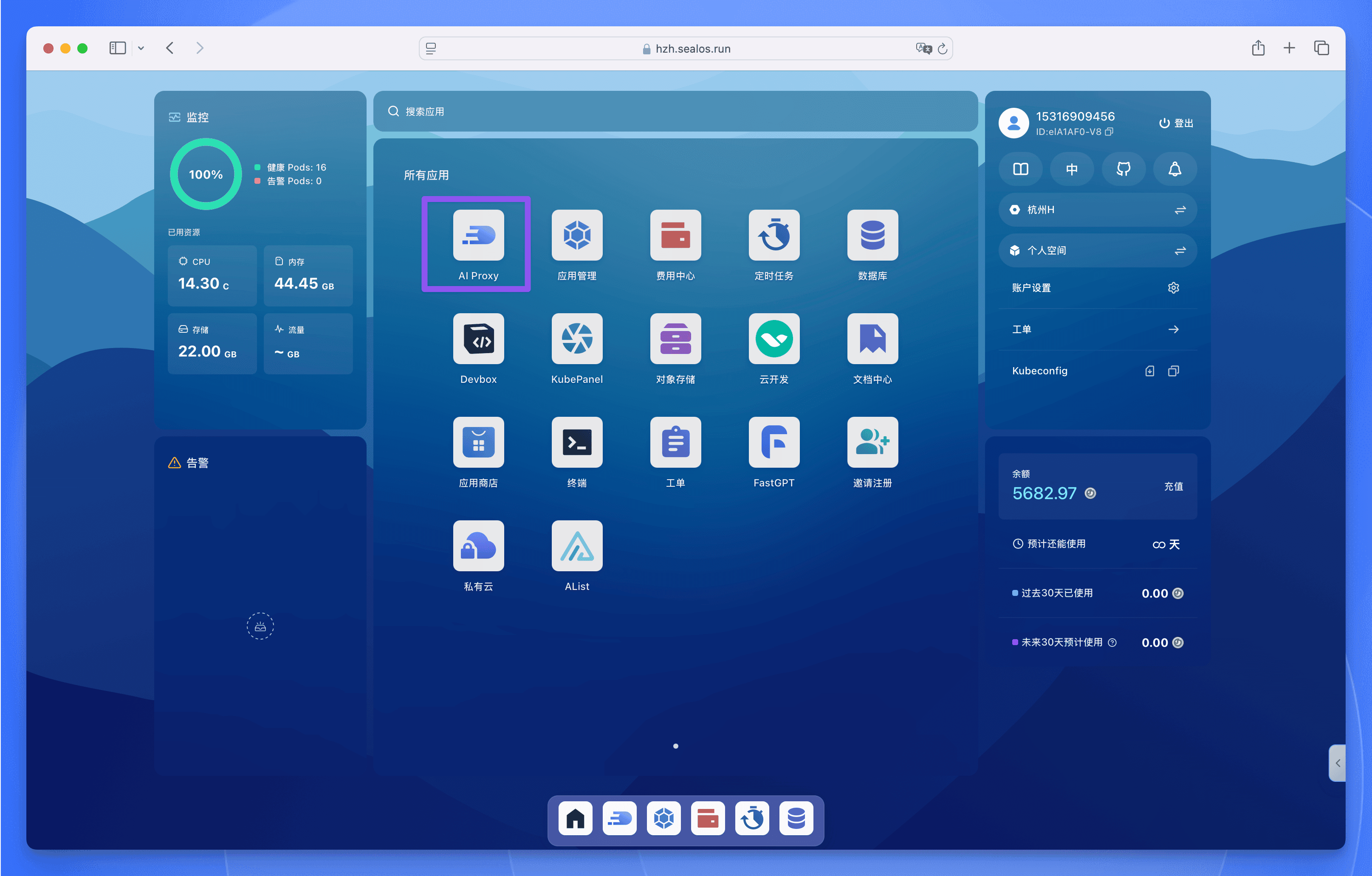 首先登录 Sealos Cloud,打开桌面上的【AI Proxy】: