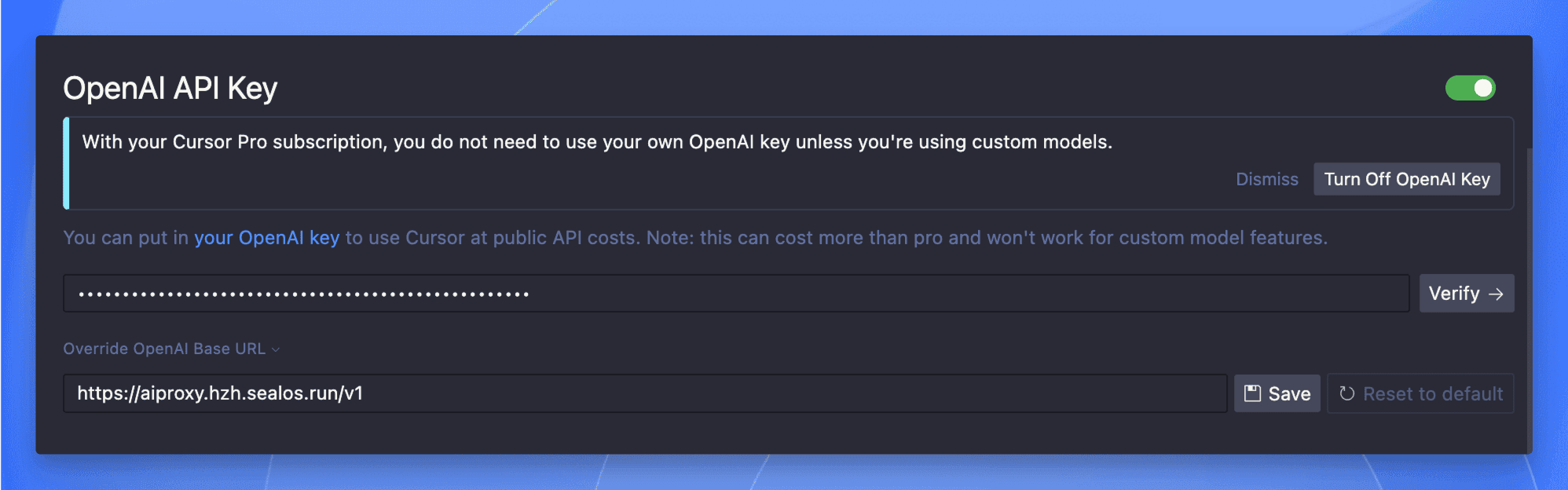 注意:Cursor 接入自定义 API 只能使用 Chat 模型,不能使用 Composer 模式。不过已经很香了。