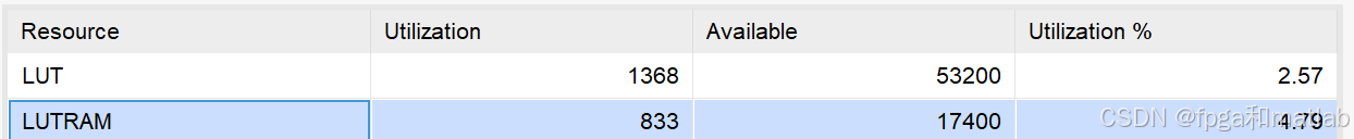 LUTRAM:将LUT用作分布式RAM/ROM(SLICEM中的LUT),包含移位寄存器(SRL)。