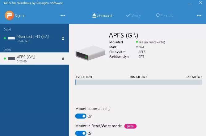 | Paragon APFS for Windows | 17.8.452+ | 商业级APFS驱动 |