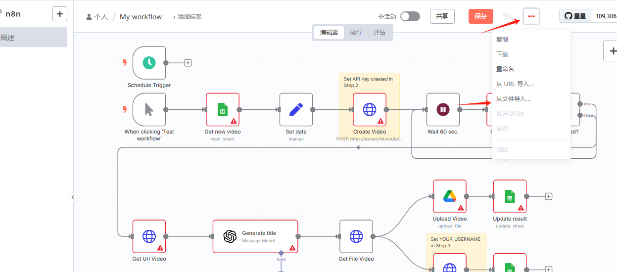 导入之后的截图, 可以修改api key 等信息之后 就可以运行了