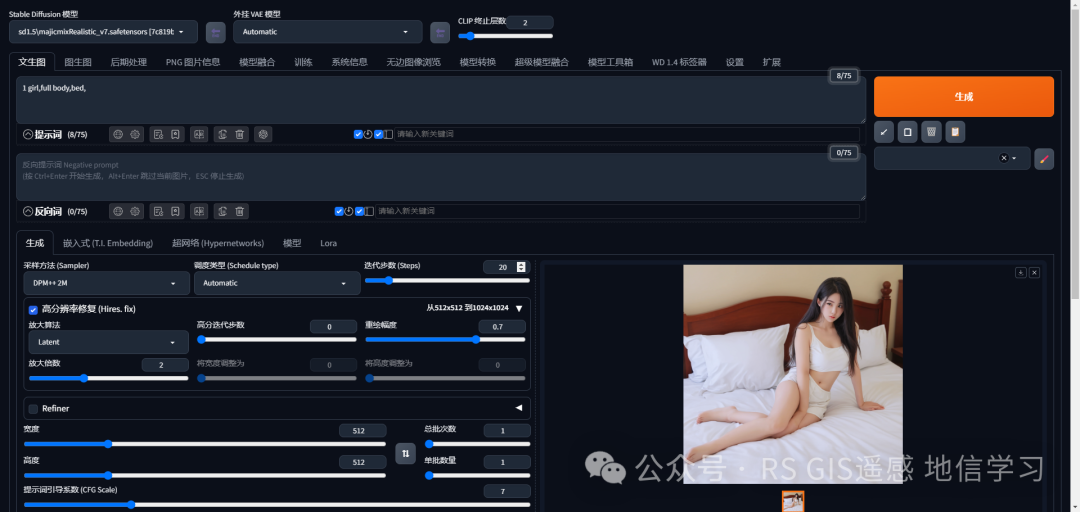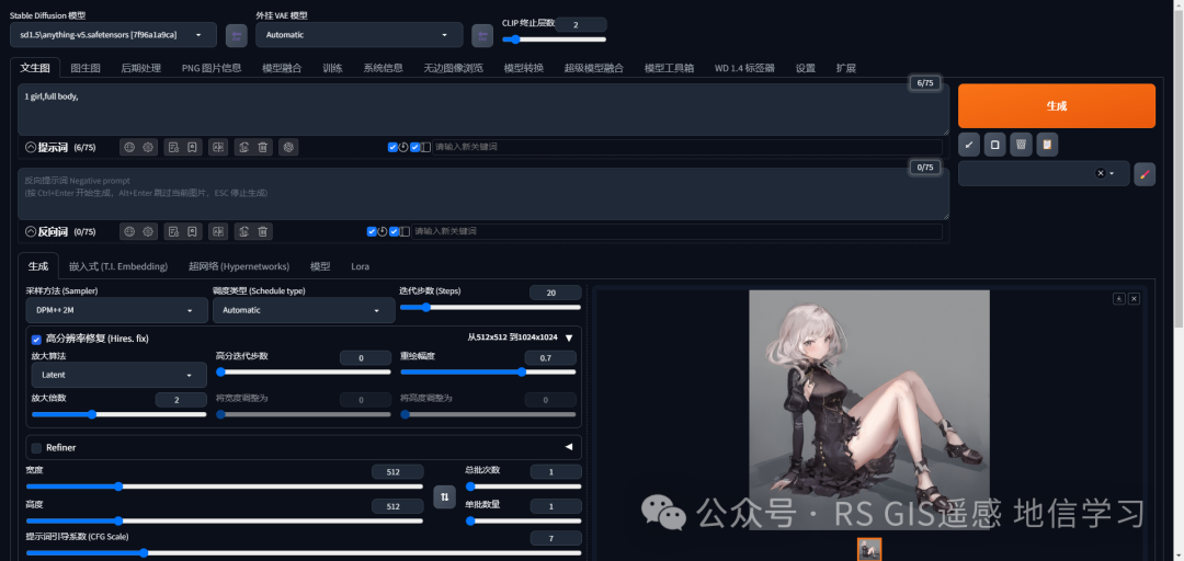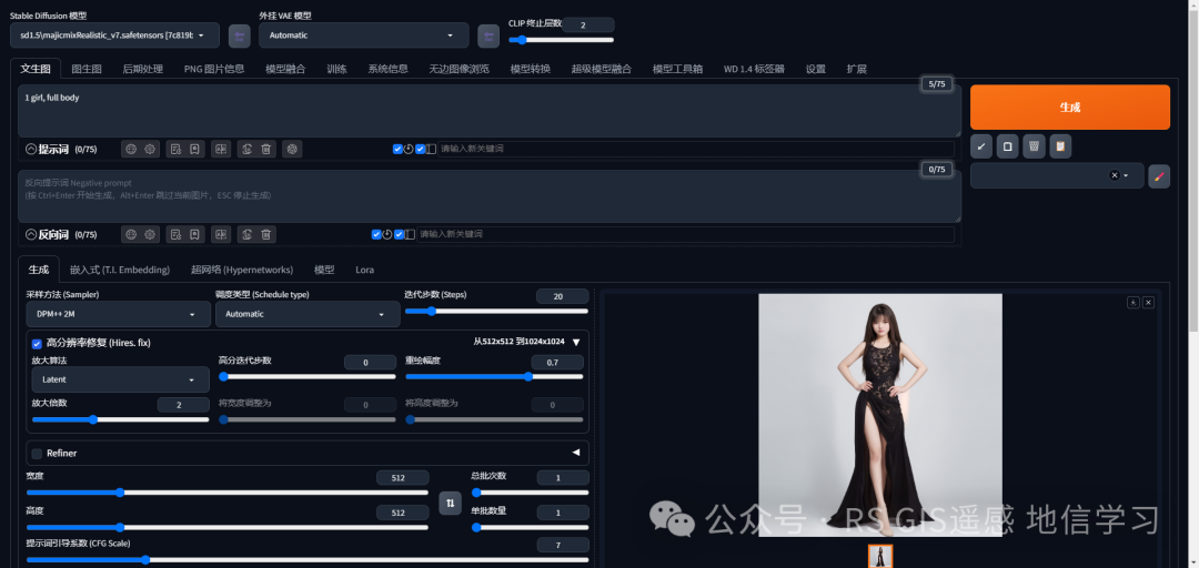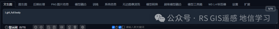 1.在提示词的文本框里输入你想要生成的图片的内容,比如我想生成一个身材很好的女孩,输入1 girl, full body即可,输入的内容要为英文,不能是中文。