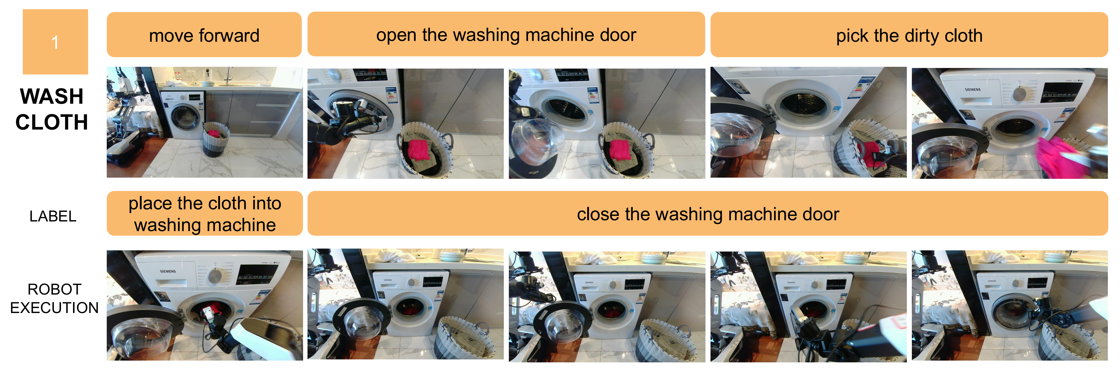 每条演示在子任务层面均配有结构化语言描述,从而为VLA模型训练提供多模态对齐