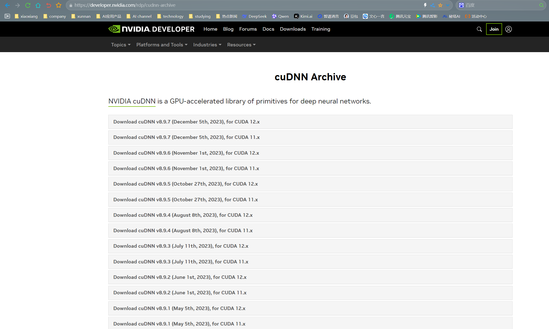- 下载匹配版本:注册并登录 NVIDIA 开发者账号后,访问 cuDNN 下载页面(https://developer.nvidia.com/rdp/cudnn-archive) ,根据已安装的 CUDA Toolkit 11.8 版本,下载对应的 cuDNN 版本,例如 cuDNN v8.6.0 (November 9th, 2022), for CUDA 11.8 。下载时需注意选择 Linux 版本的压缩包。在下载过程中,可能需要接受 NVIDIA 的使用协议。