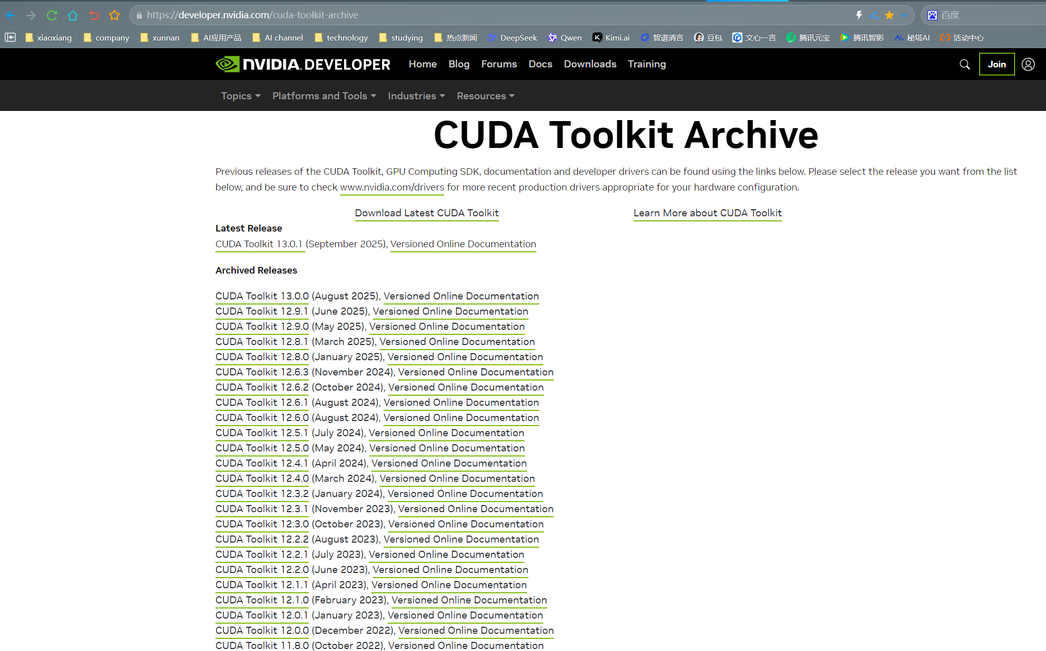在 “Download Drivers” 页面,根据显卡型号、操作系统版本等信息,选择对应的显卡驱动进行下载 。同时,前往 CUDA Toolkit 下载页面(https://developer.nvidia.com/cuda-toolkit-archive),
