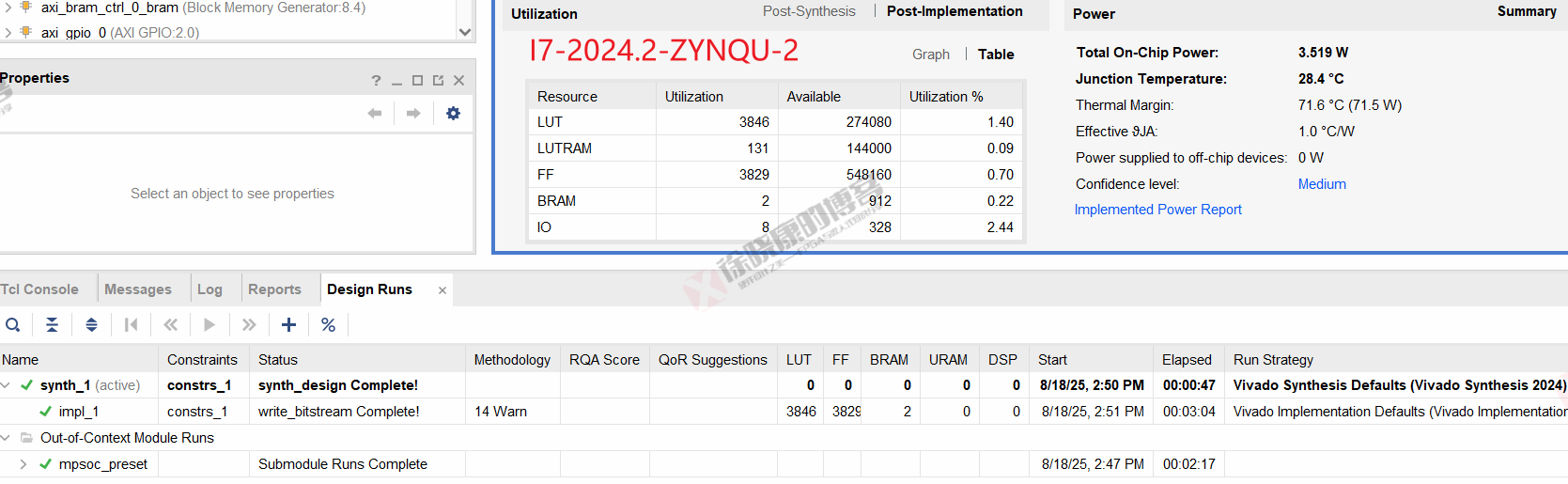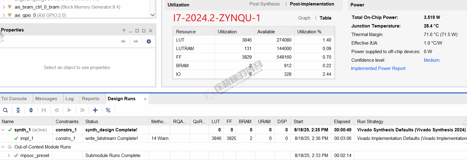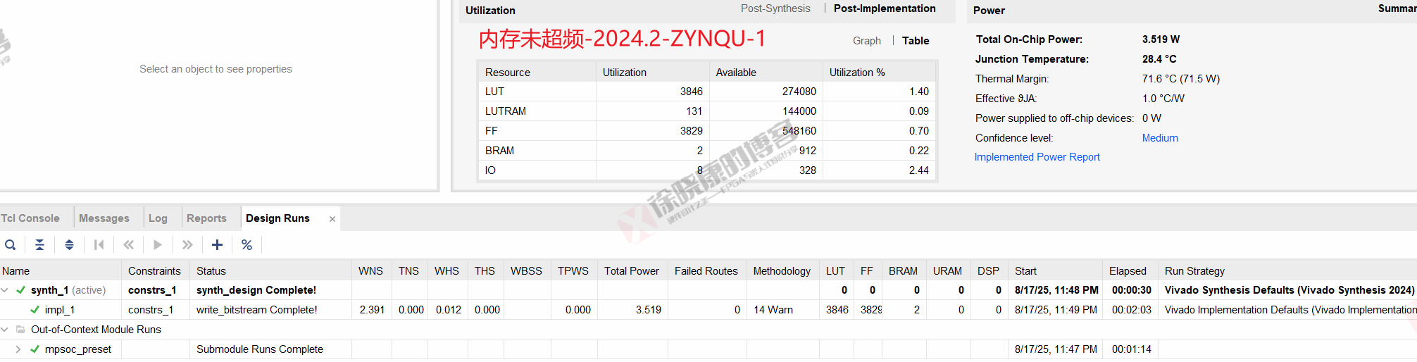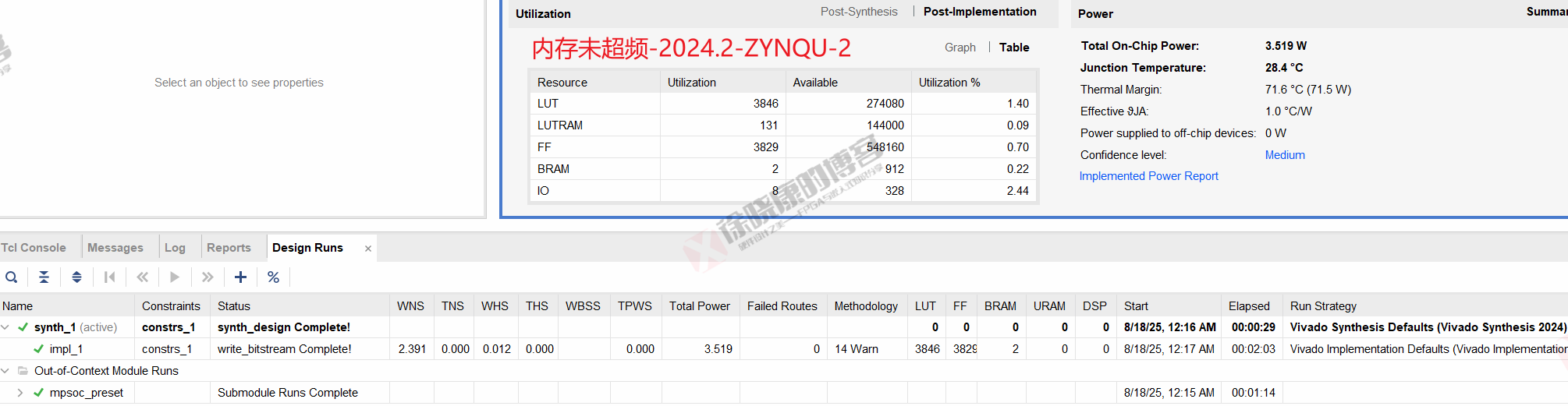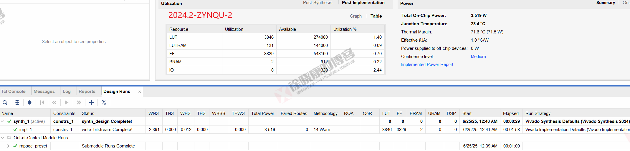 本章展示所有测试工程编译时间统计截图,以Vivado的Design Runs界面展示的Elapsed列时间为准,精确到秒。
