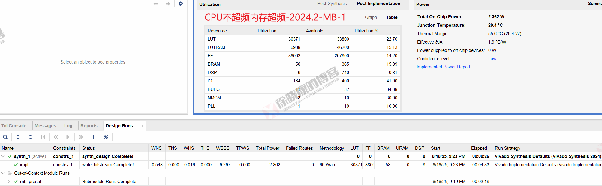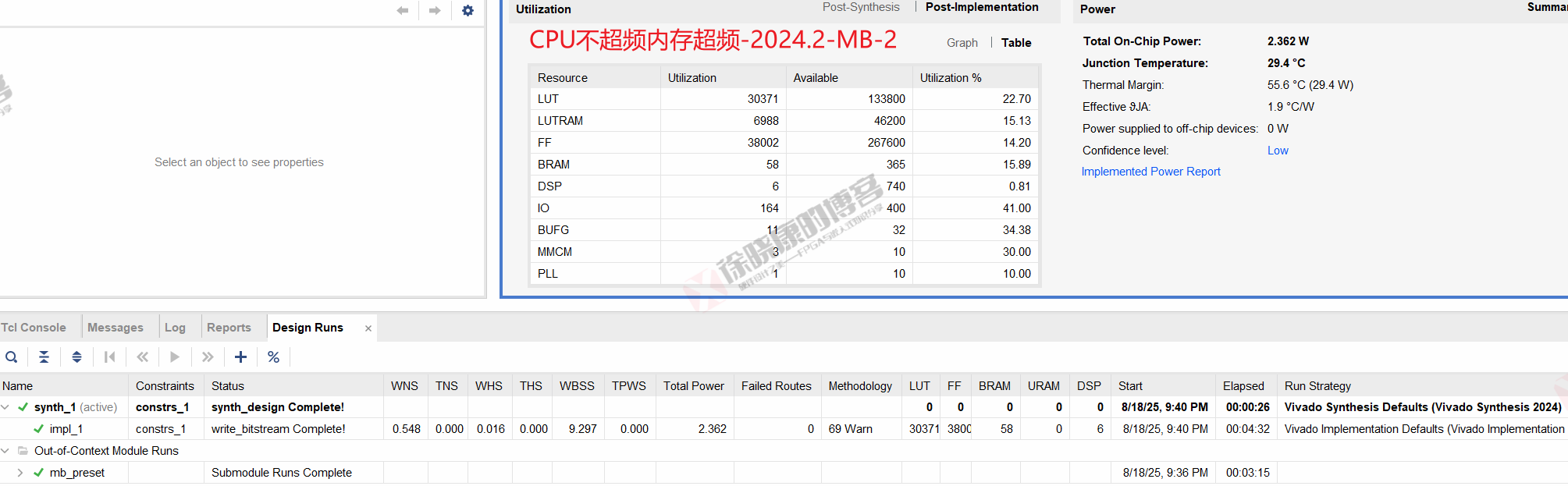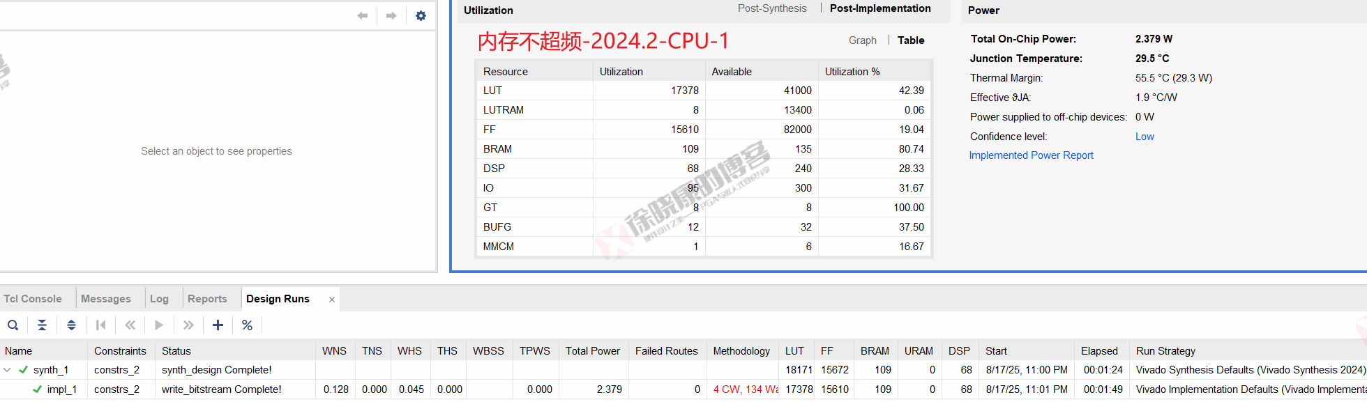 这里得出结论,CPU和内存的性能提升均能缩短Vivado编译时间,工程越复杂提升越明显,具体提升的百分比因为样本太少还难以下结论。
