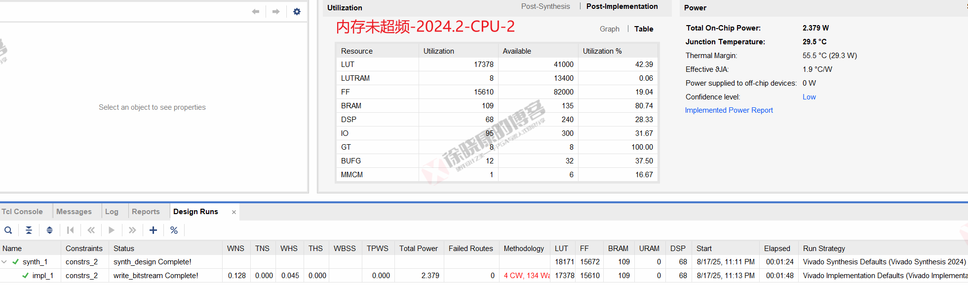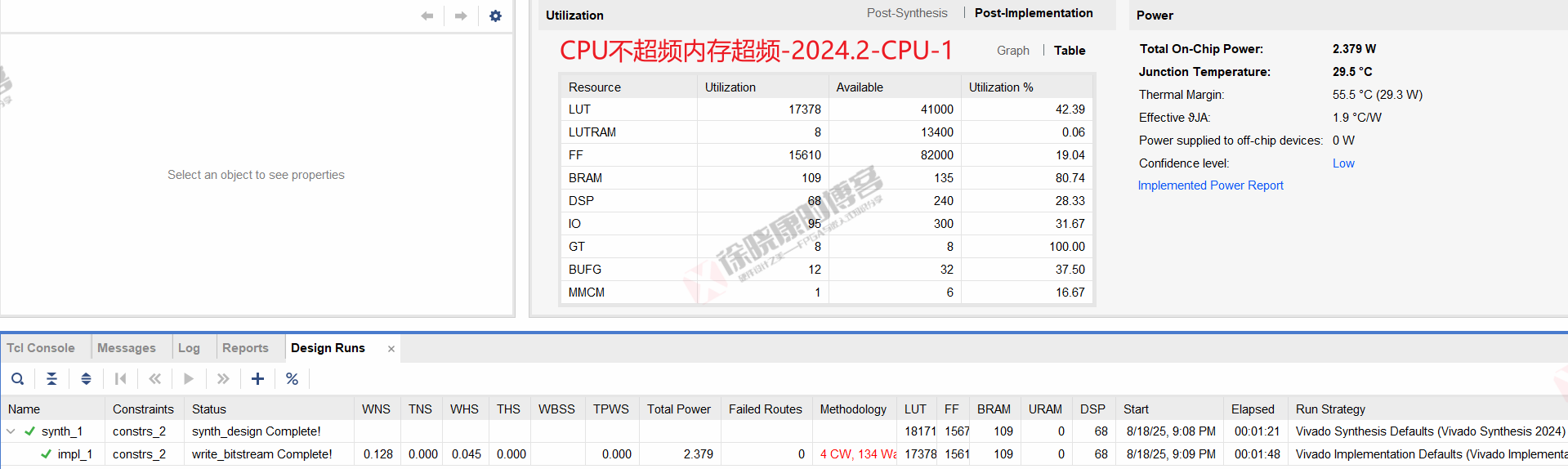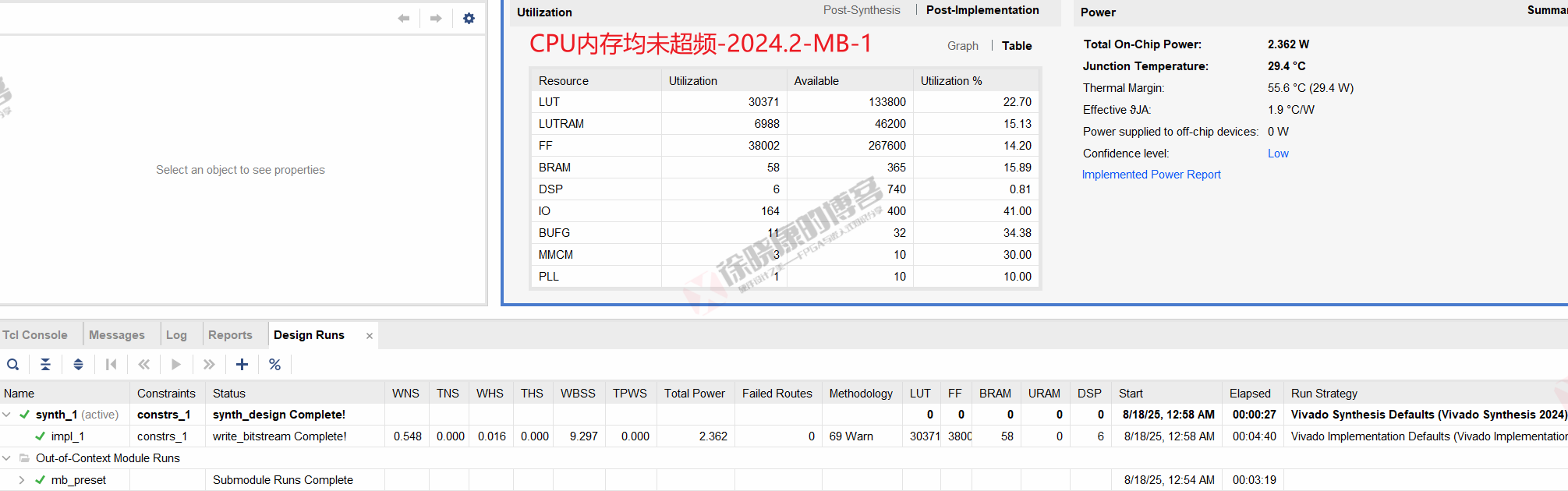 这里得出结论,CPU和内存的性能提升均能缩短Vivado编译时间,工程越复杂提升越明显,具体提升的百分比因为样本太少还难以下结论。