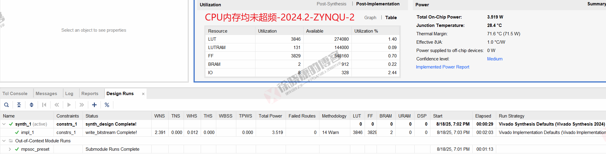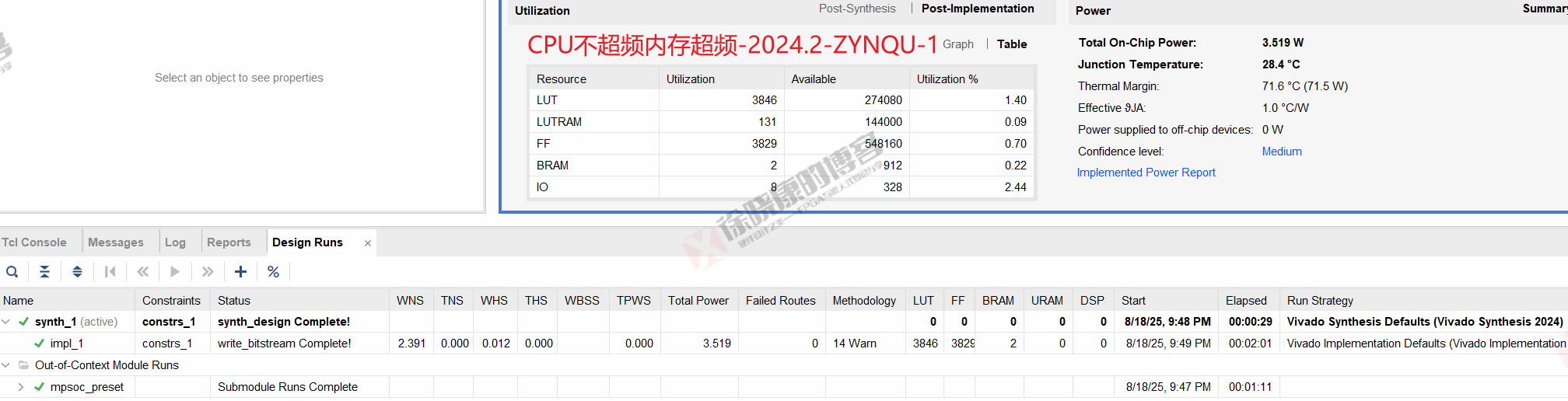 - CPU超频对缩短Vivado编译时间有帮助,约2%,这也跟超频的程度有关,我这个超频策略还是很保守的;