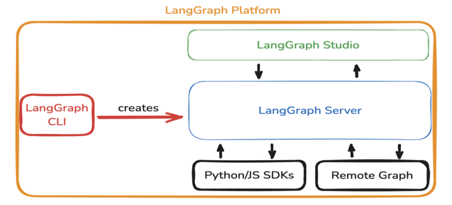 LangGraph Cli中集成了LangGraph Studio, 同时制定了智能体的开发和部署规范,用户可以通过LangGraph Cli快速创建项目架构开发部署,同时与LangSmith关联。