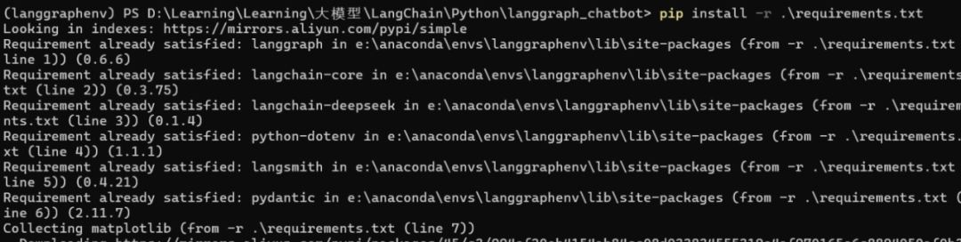 然后进入到langgraph_chatbot文件夹中执行pip install -r requirements.txt安装相关依赖。