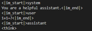 现在问"1+1=?"时,把vllm的输入print出来,发现已经有了<think>。