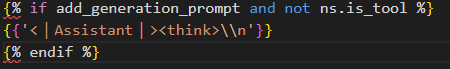 每次一定会输出<think>和<\think>,但里面内容可能是空的,也就是其实没思考,只是通过自己写的模板把<think>和<\think>补上去。