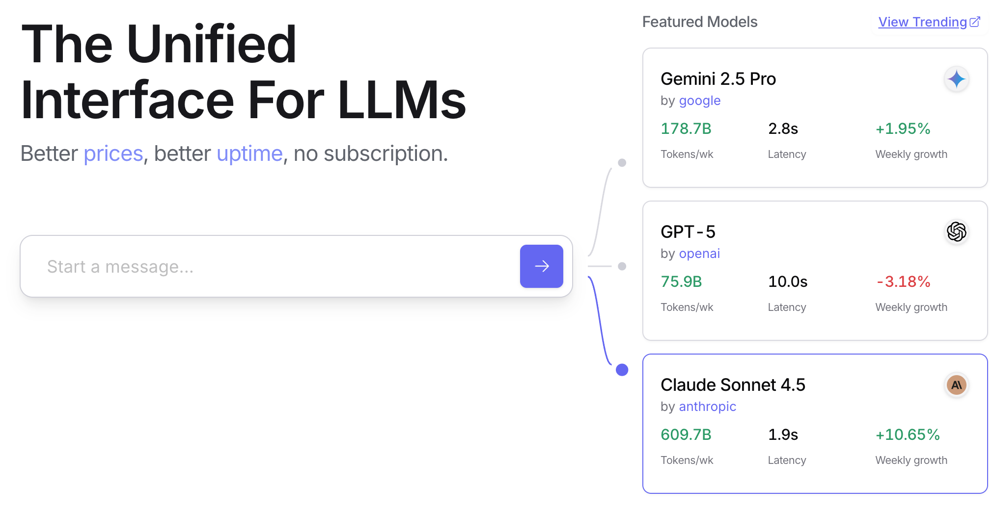 很多 AI 玩家第一个接触到的 AI 网关可能是 OpenRouter,它更像是一个 AI 模型的聚合平台,支持通过统一的接口对接几百种模型。