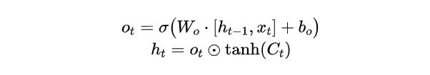 - 输出门:决定当前细胞状态中哪些信息应该被输出。