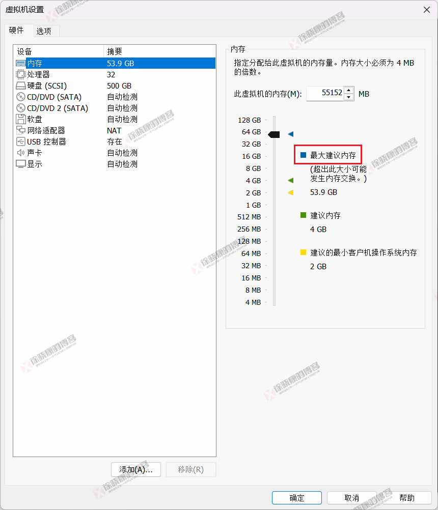 - 处理器也根据实际CPU拉满,像我这里CPU是16核32线程。