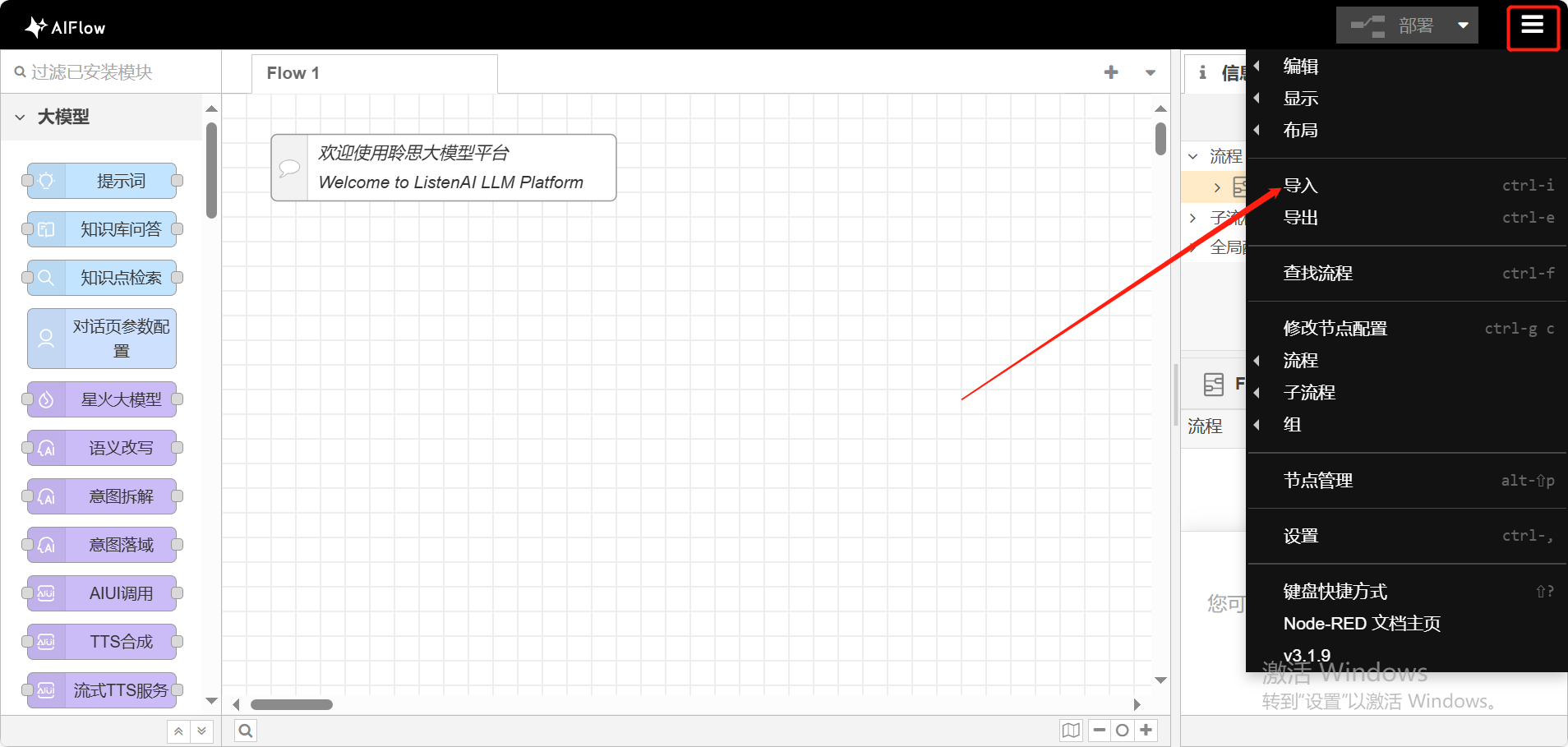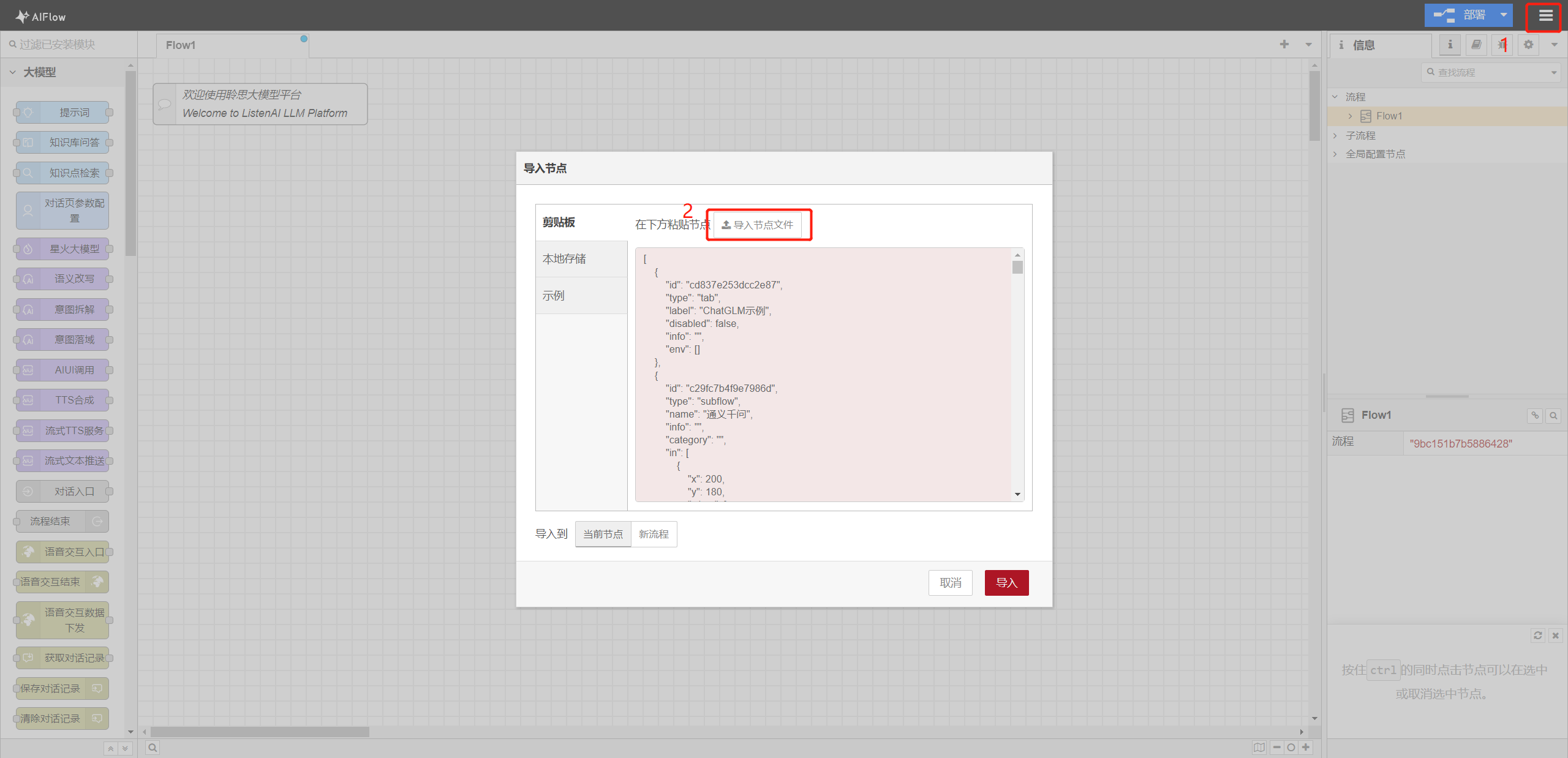 - 导入工程示例:选择 Dify 示例.json文件导入