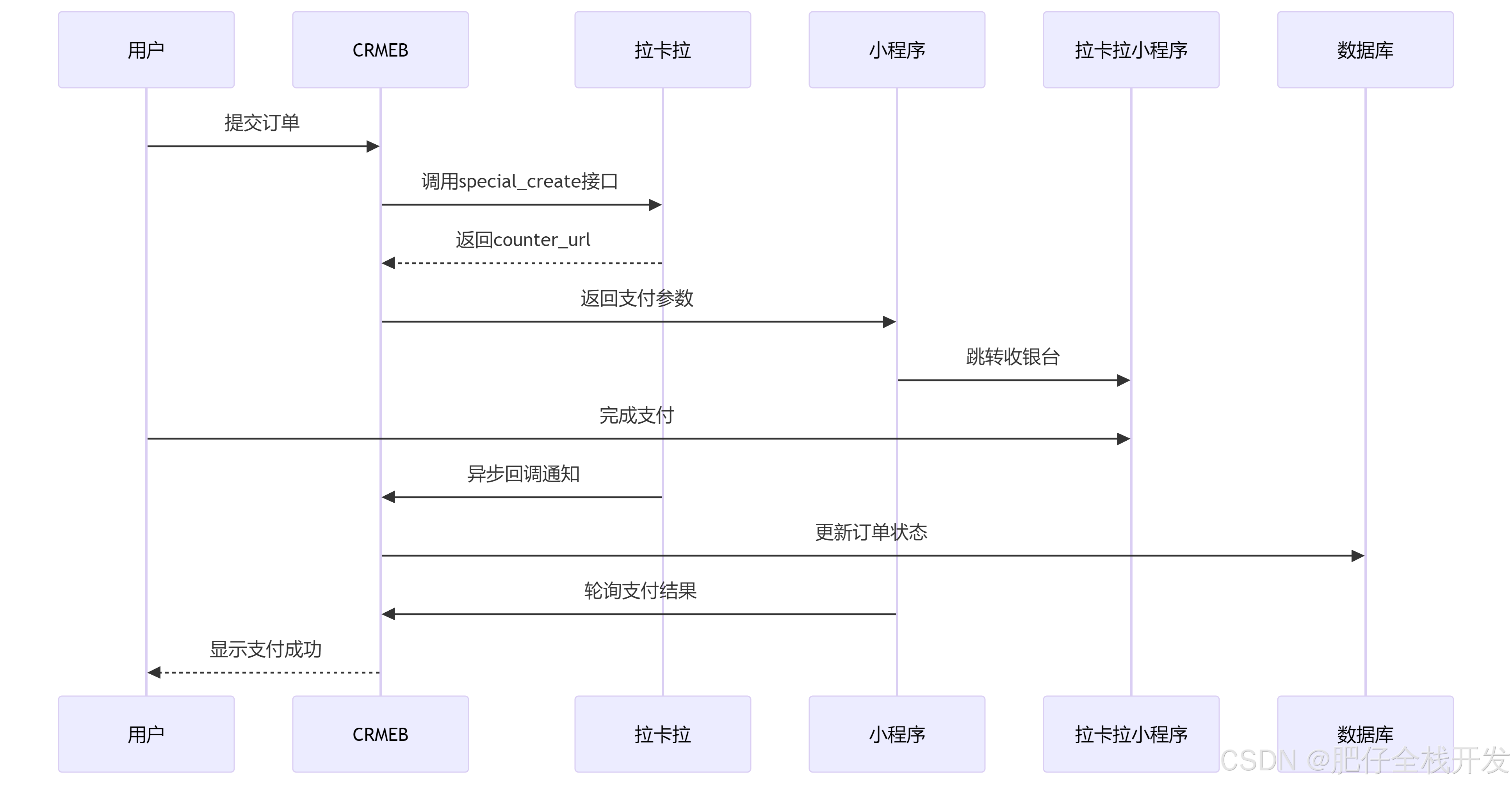 拉卡拉->>CRMEB: 异步回调通知