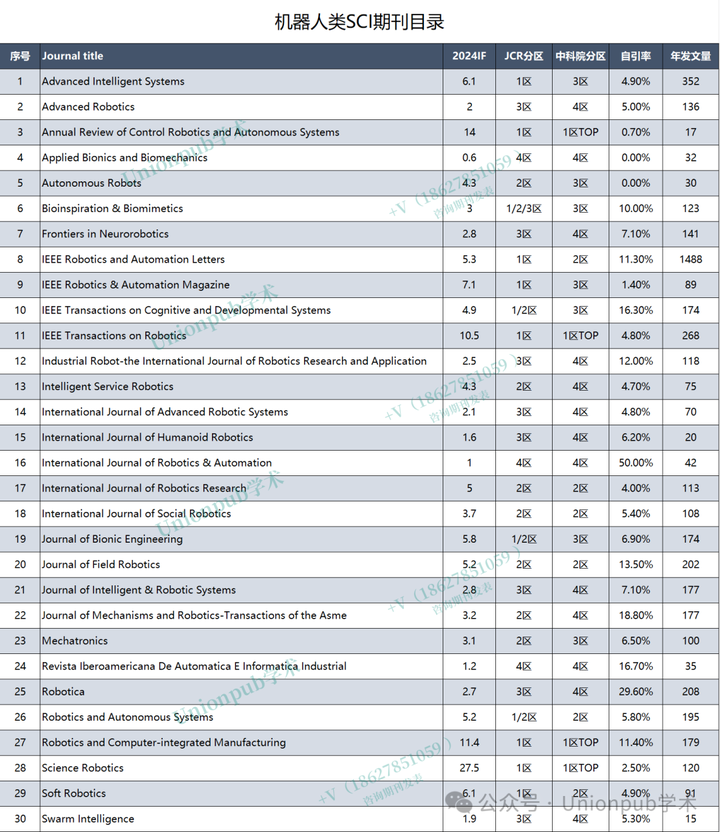 本期小编盘点了WoS数据库【机器人领域】最新在检SCI期刊,共计30本,最新IF、分区参考!