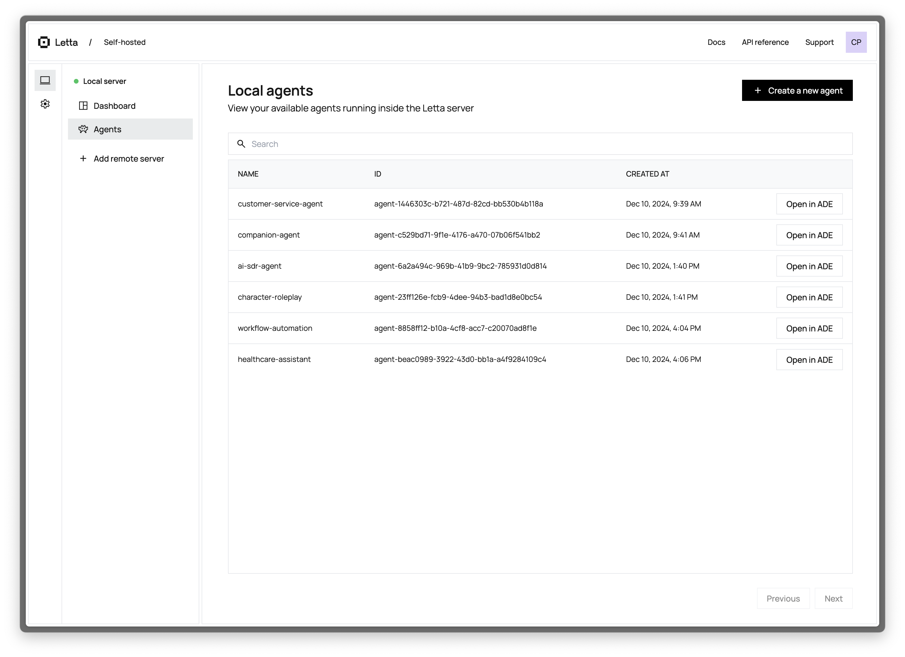如果你正在运行一个 Letta 服务器来支持最终用户应用程序(比如客户支持聊天机器人),你可以使用 ADE 来测试、调试和观察服务器中的代理。您还可以将 ADE 用作与 Letta 代理交互的通用聊天界面。