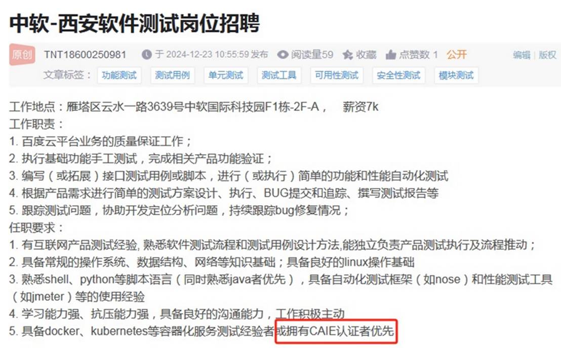 - 企业高度认可:腾讯、字节跳动等科技巨头在招聘中明确标注"CAIE优先"