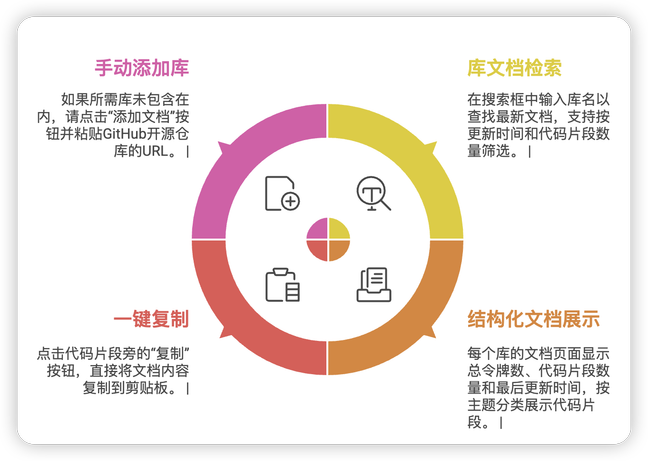 手动添加库:若所需库未在官网收录,可点击 “Add Docs” 按钮,粘贴 GitHub 开源仓库的 URL(格式为