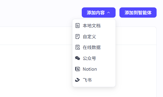 知识库添加内容有多重形式可以选择;