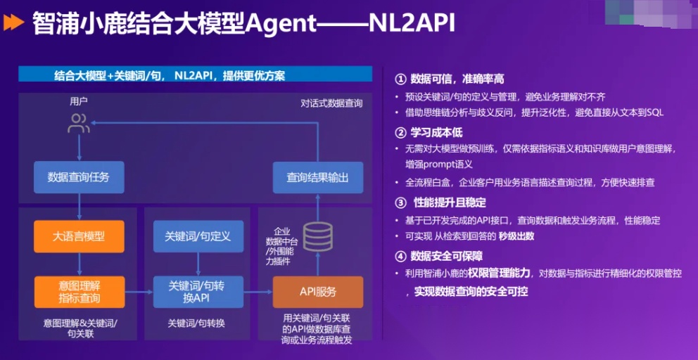 - 支持 API 调用,可嵌入业务系统(如在产品管理系统中,点击 “问小鹿” 查询同类产品信息)。