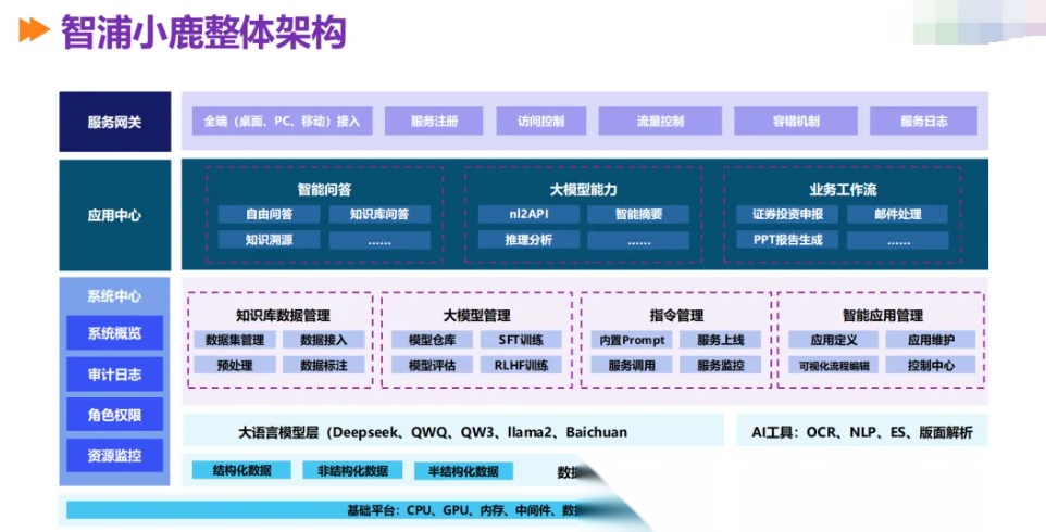 “浦小鹿” 之所以能成为 “全能助理”,源于其 “分层协同、安全可控” 的技术架构,以及覆盖员工工作全场景的核心功能。
