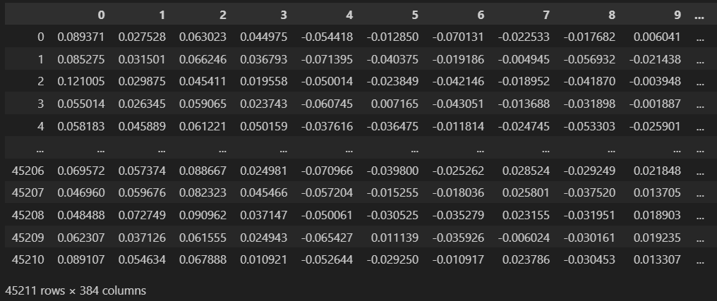 df_embedding_with_out.shape -> (45211, 384)