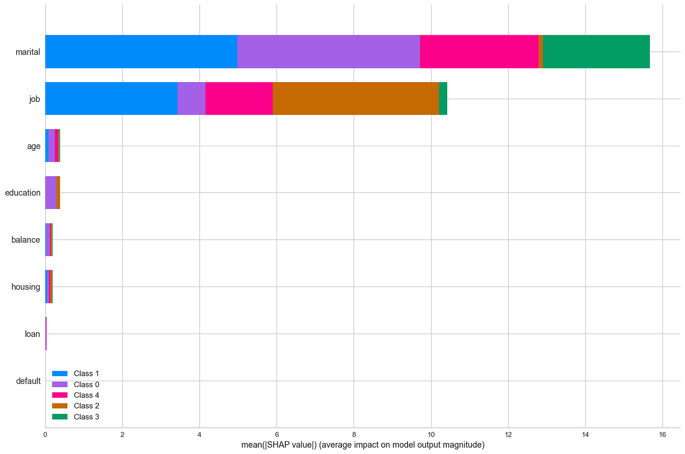 我们看到,这个模型主要基于“marital”和“job”变量。另一方面,我们看到有些变量没有提供太多信息。在实际案例中,应该创建一个没有这些信息量少变量的新模型。