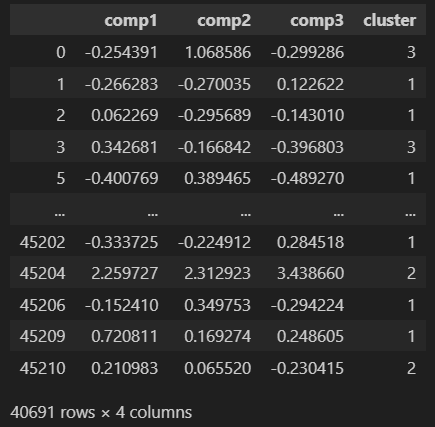 最后,我们从嵌入中获取数据框,这将是我们 Kmeans 模型的输入。
