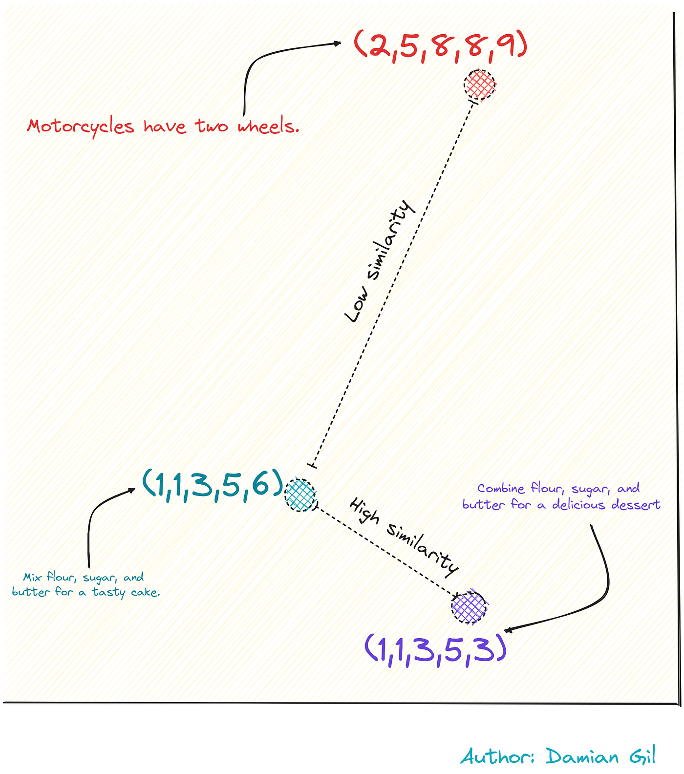 嵌入和相似性概念(图片来源:作者)。