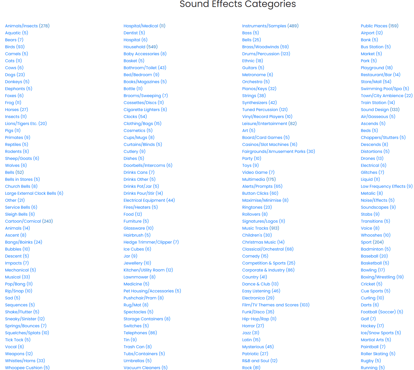 一个拥有 50 万种国外音效资源网站,音效分类有 25 种主题,你所想的到的或没想到的都在里面,而且所有音效都能够让你用在制作影片、短视频、抖音、游戏以及商业用途上,注册后方可免费下载,无须缴版权费用,只要注明出处是来自freesfx网站即可。