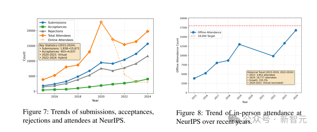 官方会议数据(NeurIPS等):投稿量、接受率、参会人数等;