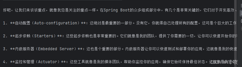 Spring AI 最初专注于处理语言输入和生成语言输出的模型。该项目的理念是为开发人员提供一个抽象接口,为将生成式 AI 作为独立组件纳入应用奠定基础。