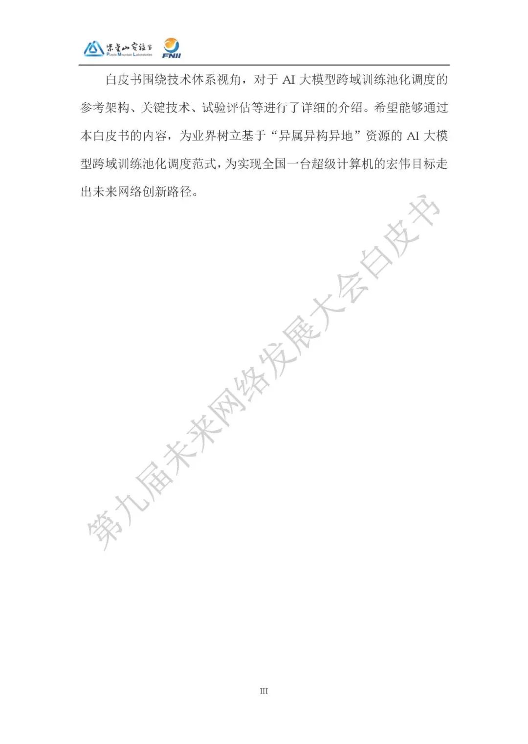 该白皮书由紫金山实验室等单位编制,围绕 AI 大模型跨域训练展开,分析行业现状与技术路线,提出创新技术体系并验证评估,为实现全国一体化算力网提供技术路径。